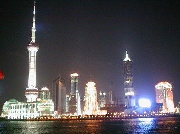 ここの夜景は特別に美しく、浦東地区にある東方明珠塔(高さ468mのテレビ塔)のネオンが見事に輝いていた。