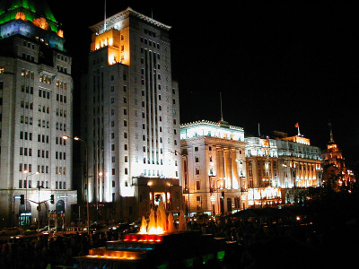 外はライトアップされた洋風建築が並ぶ上海の名所、大通りを挟んだ反対側の黄浦河沿いのプロムナードは横浜の山下公園に雰囲気が近い。