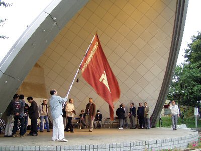 ![]() 応援旗も登場 |