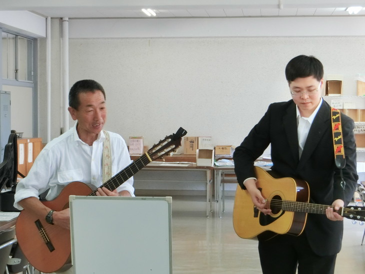 ラテン音楽、応援歌、校歌等の演奏をして頂きました。